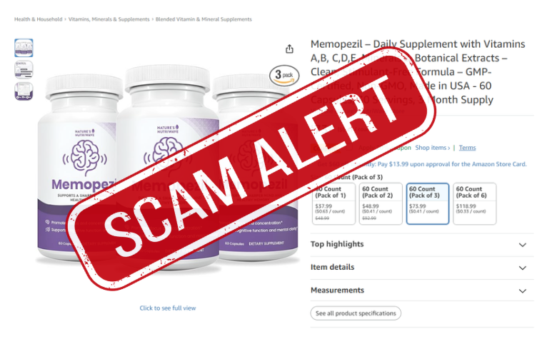 We do not recommend ordering MemoPezil on Amazon, Walmart, or eBay because all of them are fake with completely different ingredients, and it can be very dangerous for you.